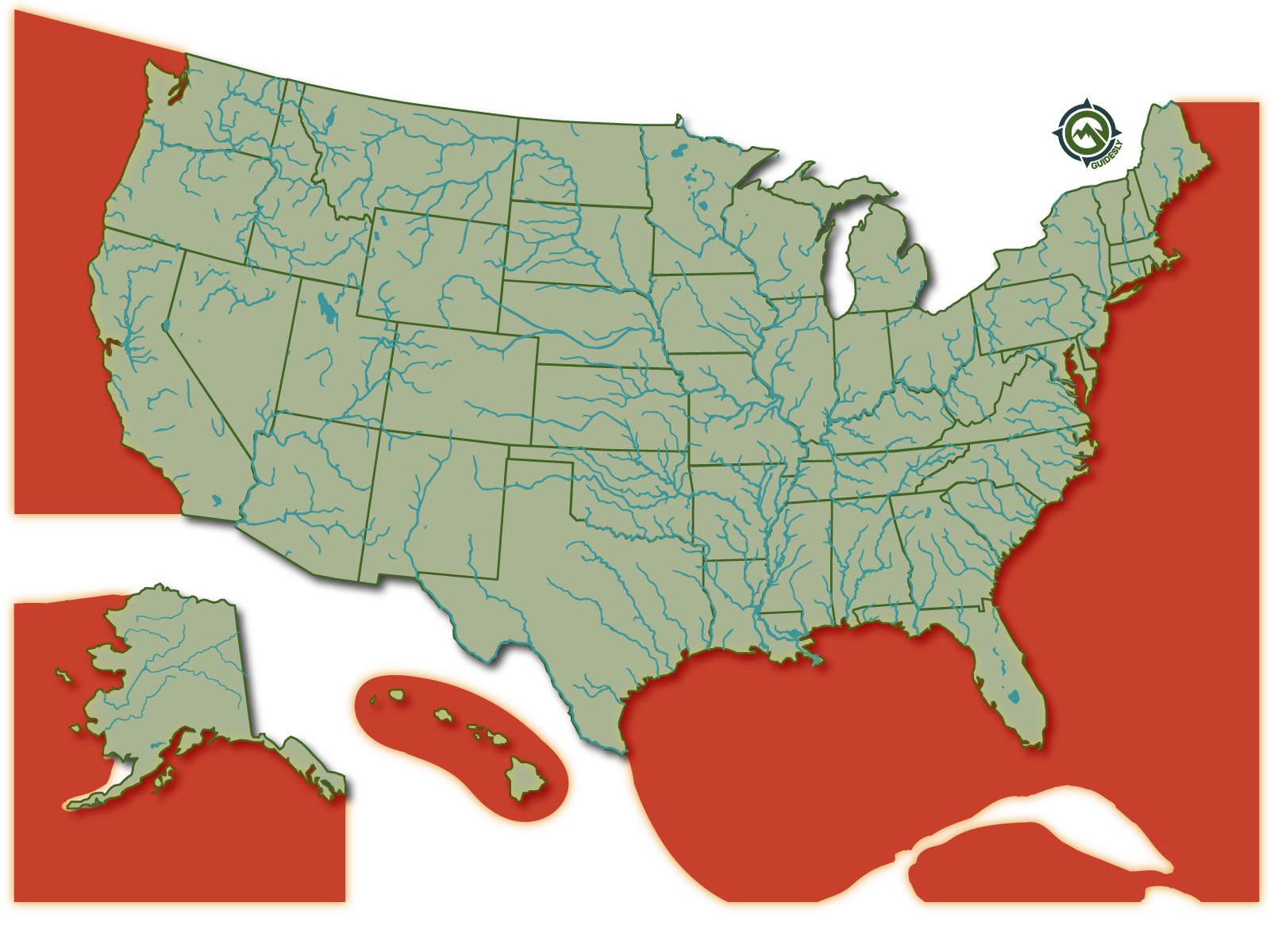It can naturally be found along the East Coast (from as far north as Canada to down south in the Gulf of Mexico). However, you can find it in most water bodies in North America as the species was introduced across the continent for recreational fishing and for controlling the gizzard shad population, which the Striped Bass is known to prey upon.